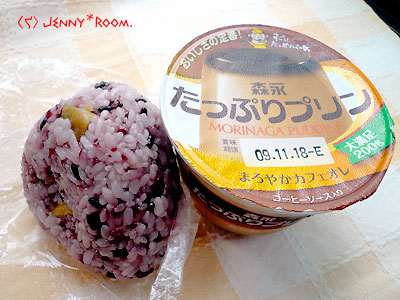 今日のランチはおにぎりとプリン☆