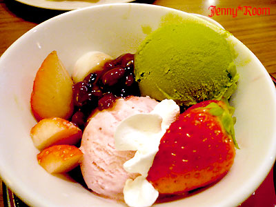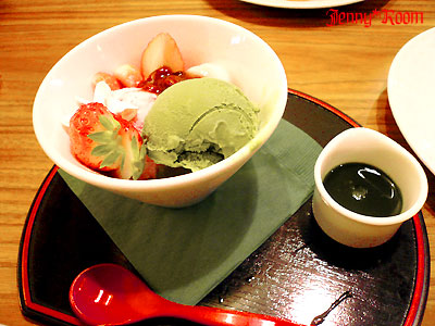 「苺の抹茶あんみつ」