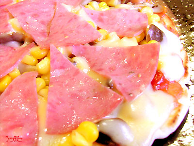 トッピングは。。。しめじ、シーフードミックス、コーン、サラミハム