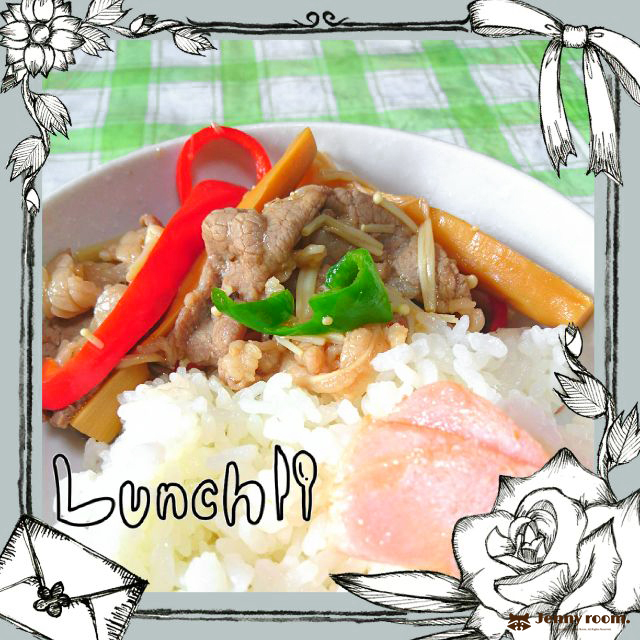 肉野菜炒め(牛肉、赤ピーマン、しめじ、キャベツ)